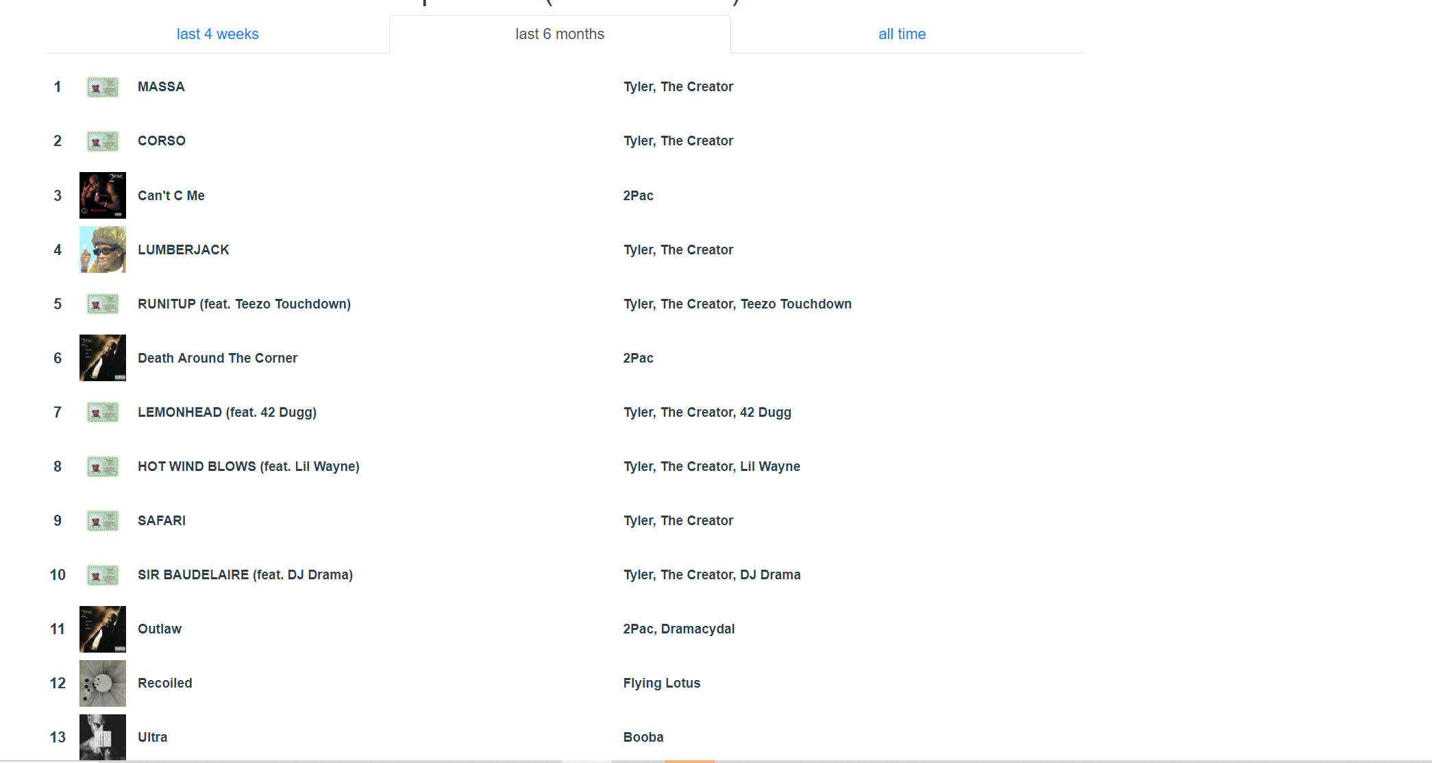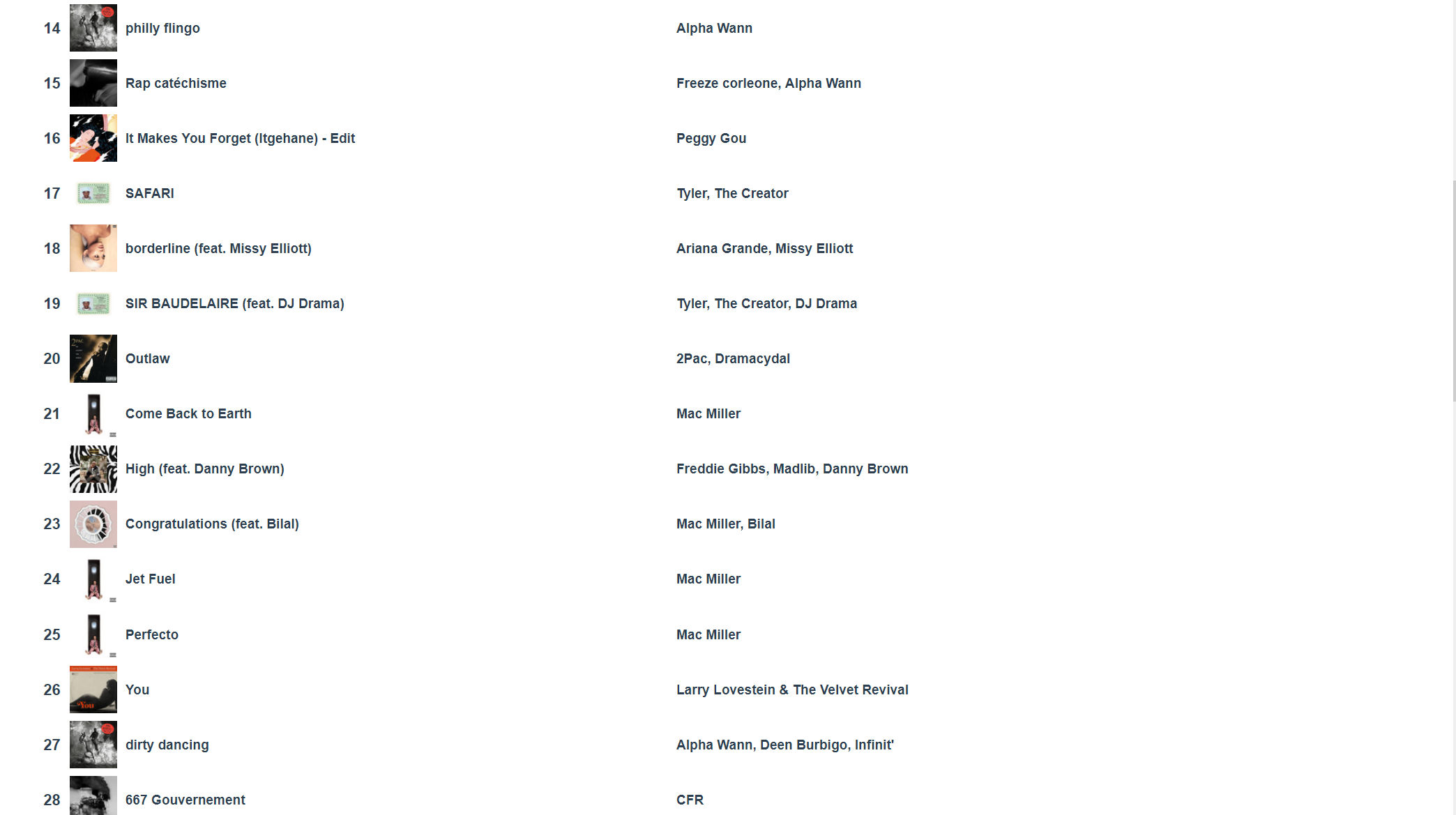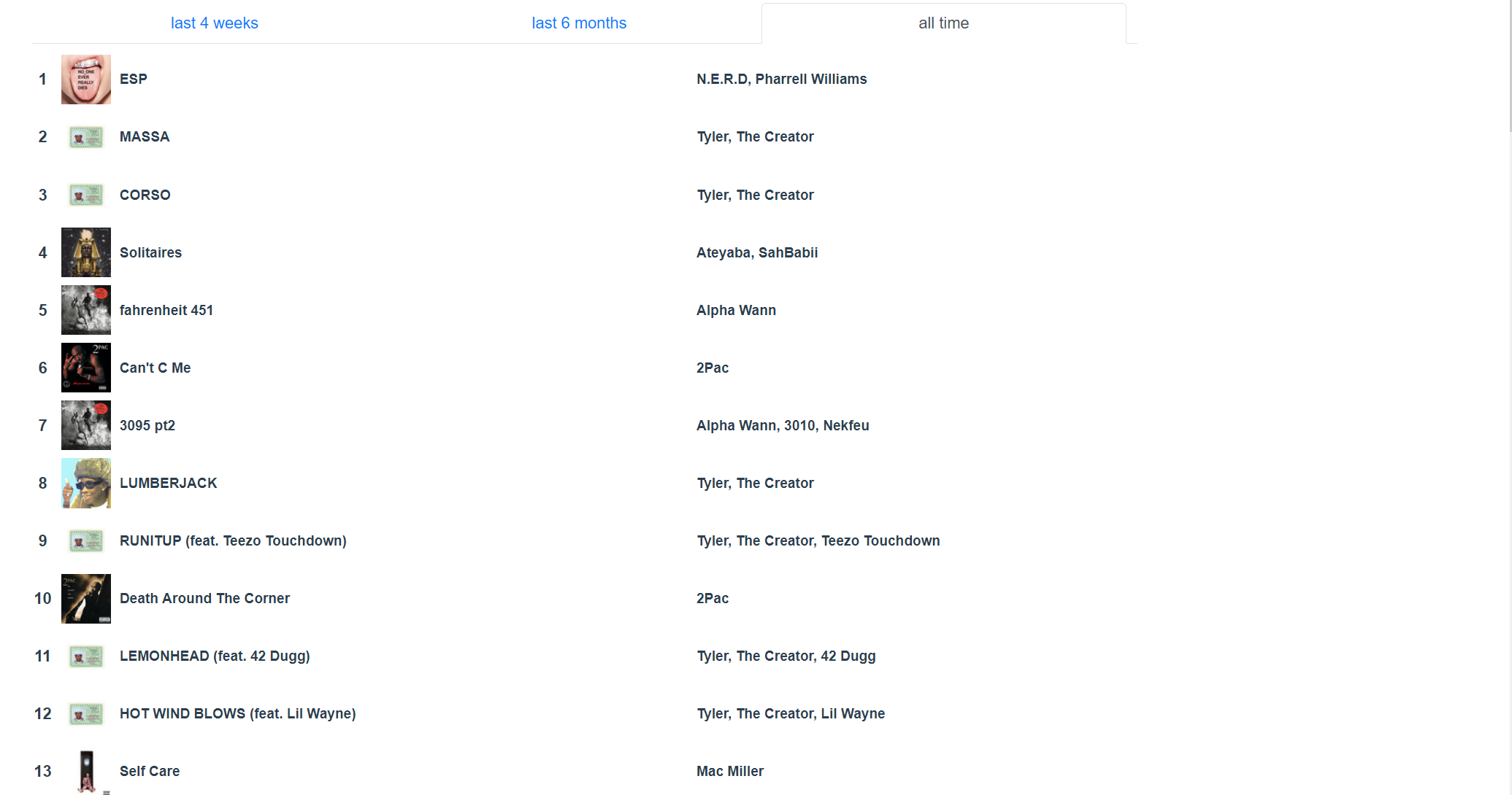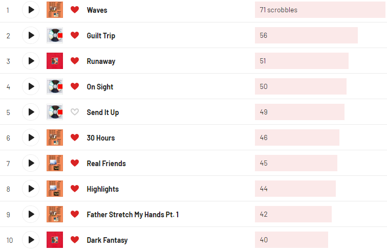 Putain j’ai Petit Coeur de 13 Block en premier alors que j’ai pas l’impression de l’avoir écouté autant que ça et j’ai Closed on Sunday en 3ème je comprends pas