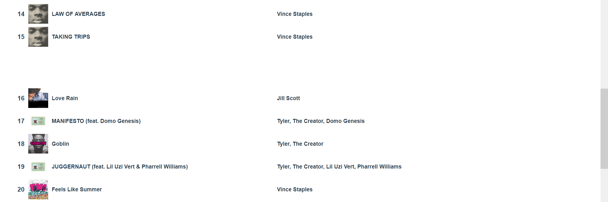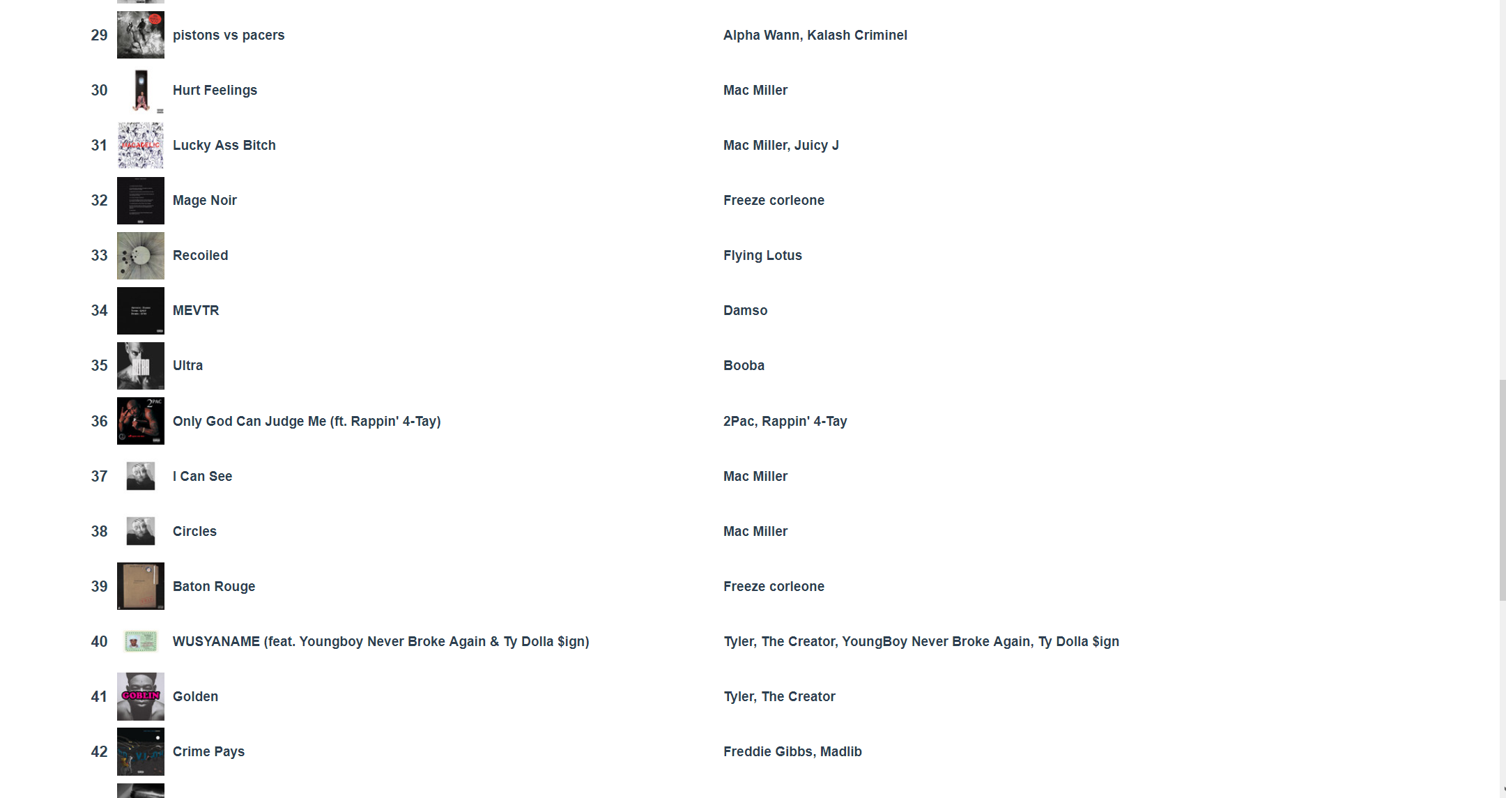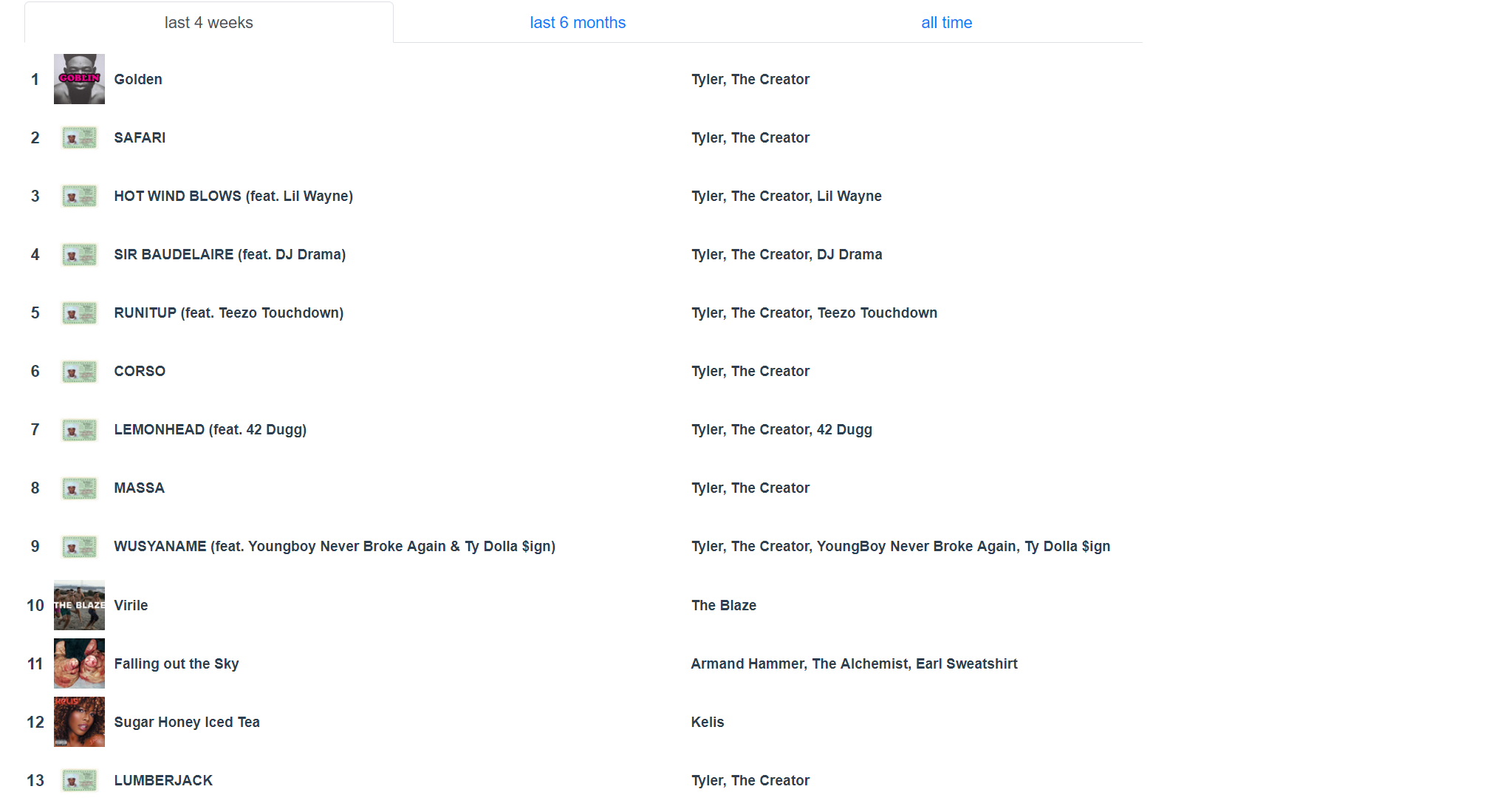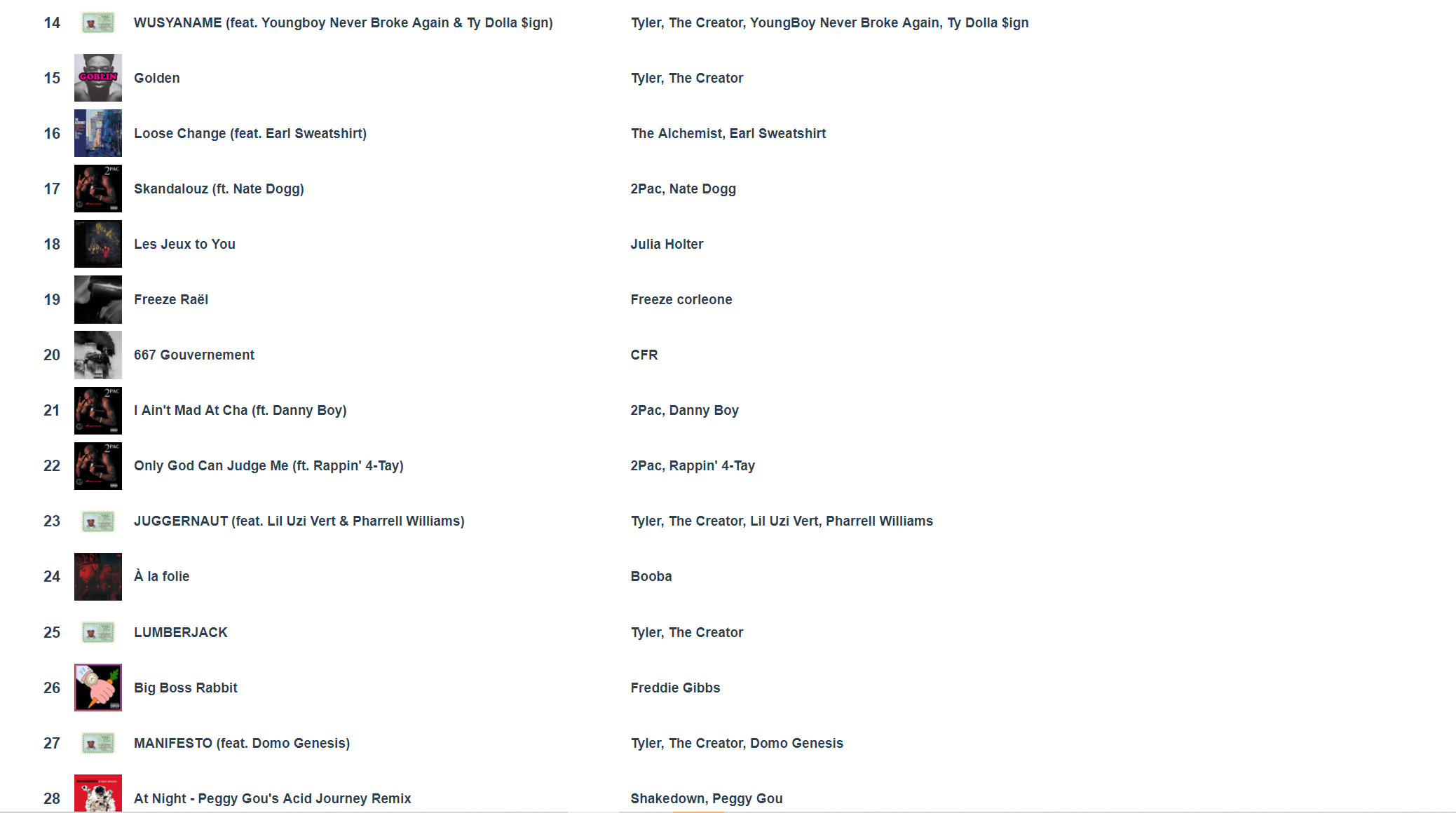 Putain j’ai Petit Coeur de 13 Block en premier alors que j’ai pas l’impression de l’avoir écouté autant que ça et j’ai Closed on Sunday en 3ème je comprends pas