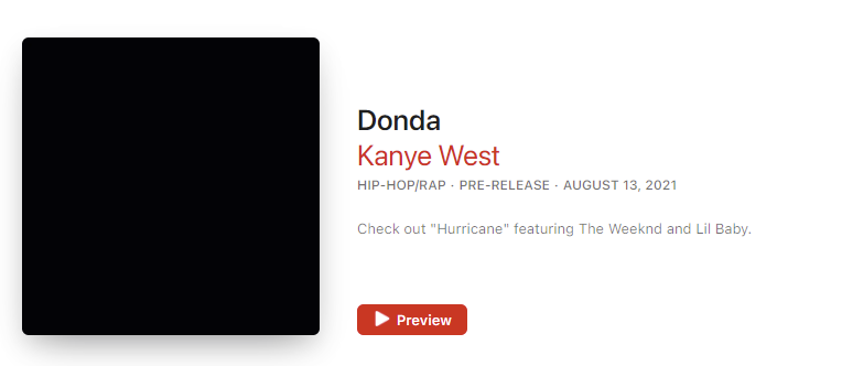 Pour ceux qui ont Apple Music , si vous dite à Siri « ajoute le dernier album de Kanye West dans Apple Music » l’album Donda apparaîtra dans votre bibliothèque mais vous ne pourrez pas lire les sons