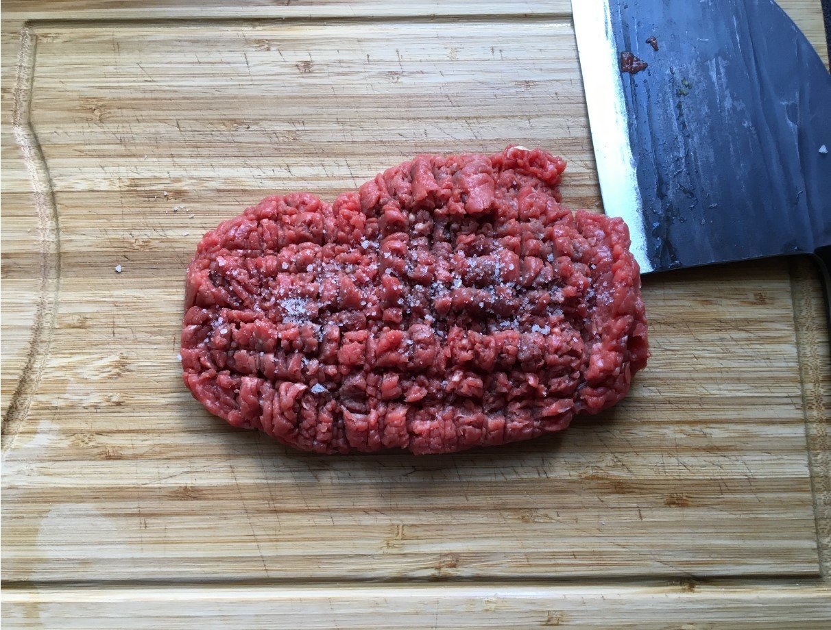 un peu de fleur de sel sur notre viande hachée qui va rejoindre les autres dans la poele