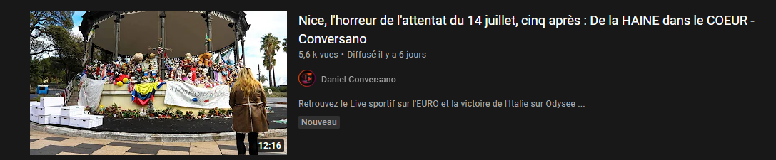 Sa dernière vidéo (datant d'APRES le 12 juillet) :