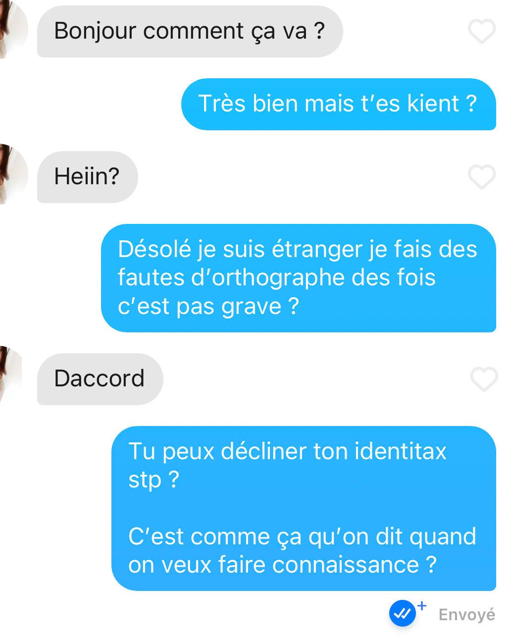 Oui enfin les mecs vos fakebg de l'espace temps qui représente 0.01 % des hommes évidemment que toute les meufs vont mouiller dessus c'est logique hein pas la peine de faire les surpris avec vos screensMais du coup que je comprenne un truc car je suis pas du tout dans le délire Tinder.