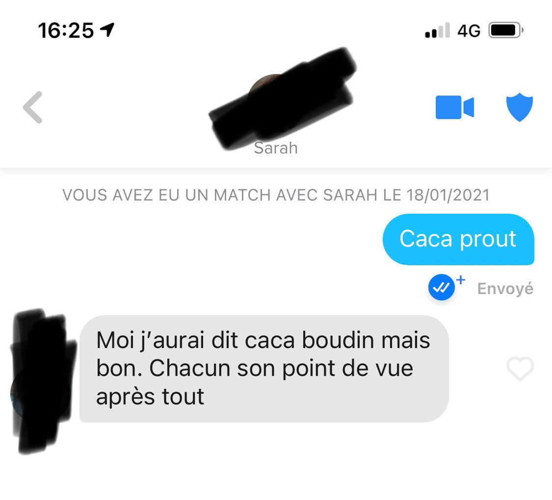 Oui enfin les mecs vos fakebg de l'espace temps qui représente 0.01 % des hommes évidemment que toute les meufs vont mouiller dessus c'est logique hein pas la peine de faire les surpris avec vos screensMais du coup que je comprenne un truc car je suis pas du tout dans le délire Tinder.