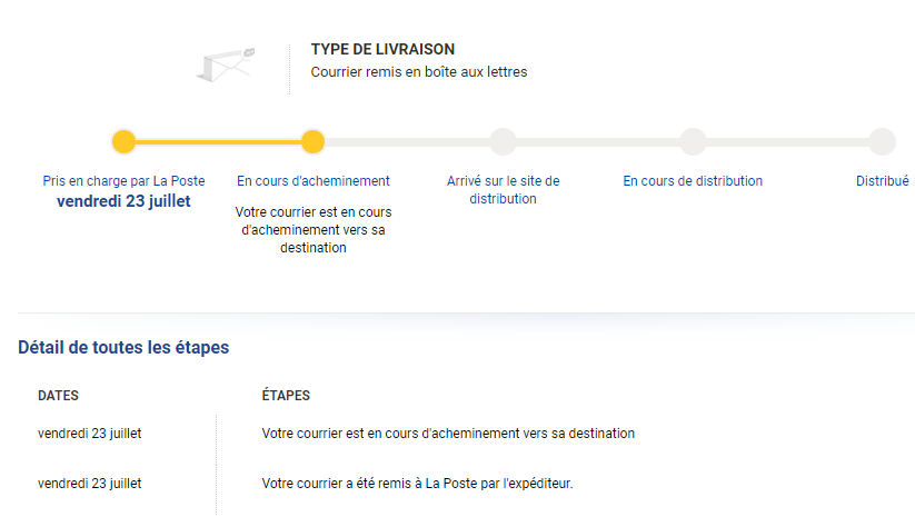 " Votre courrier a été remis à La Poste par l'expéditeur."