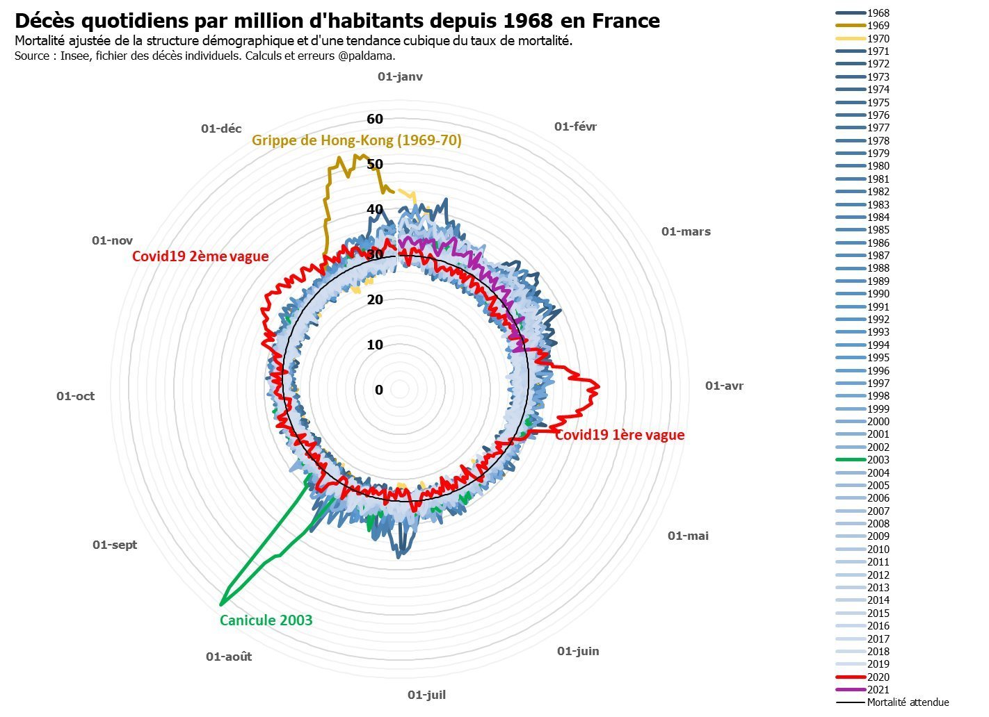 pic de mortalité inégalé depuis 1968 en ajustant par âge :