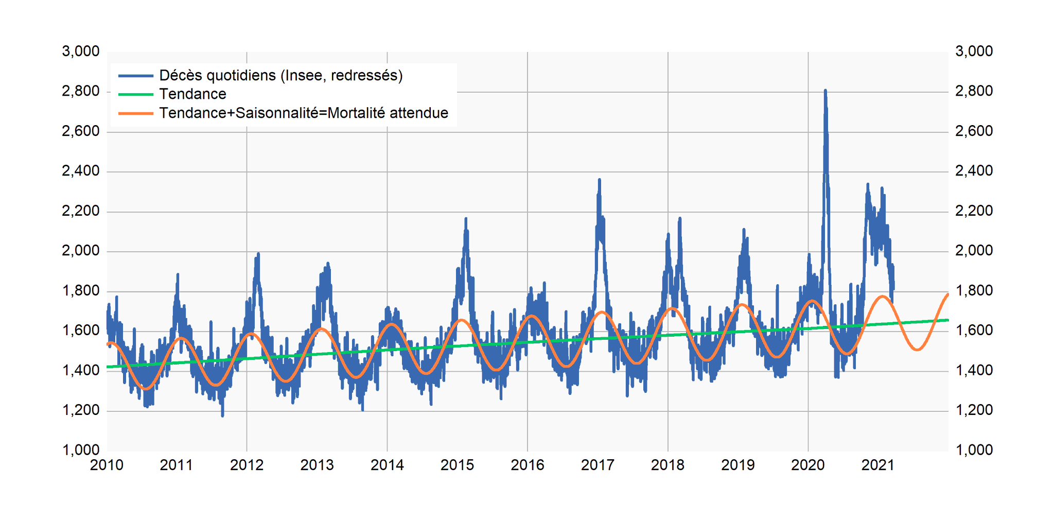 Visiblement tu ne sais pas comment on calcul la surmortalité. Il s'agit d'ajuster par âge. Il s'agit de prendre en compte la tendance globale.