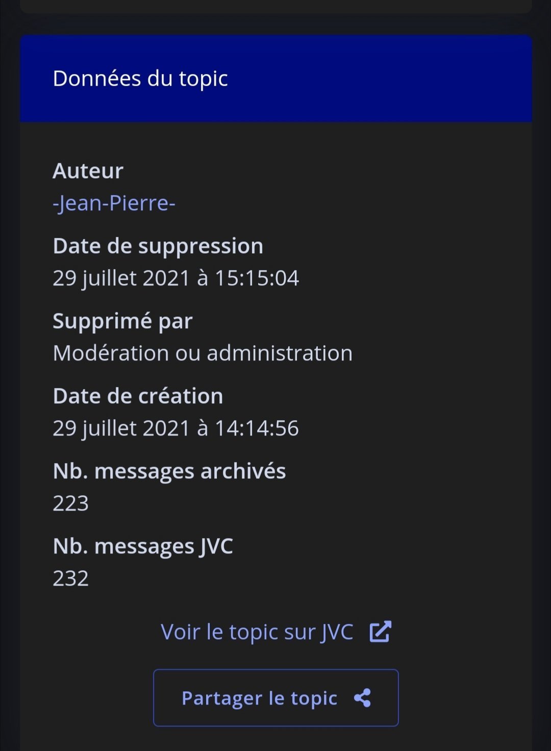 Le 29 juillet 2021 à 17:16:05 PsdoJetable017 a écrit : Ils ont recu l'ordre de rendre ce forum le plus merdique possible, je vois que ca comme explication