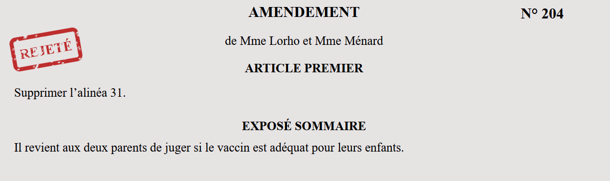 Alinéa 25 supprimé :« Le fait de présenter un document attestant du résultat d’un examen de dépistage virologique ne concluant pas à une contamination par la covid-19, un justificatif de statut vaccinal concernant la covid-19 ou un certificat de rétablissement à la suite d’une contamination par la covid-19 appartenant à autrui ou de proposer à un tiers, de manière onéreuse ou non, y compris par des moyens de communication au public en ligne, l’utilisation frauduleuse d’un tel document est puni de cinq ans d’emprisonnement et de 75 000 euros d’amende.