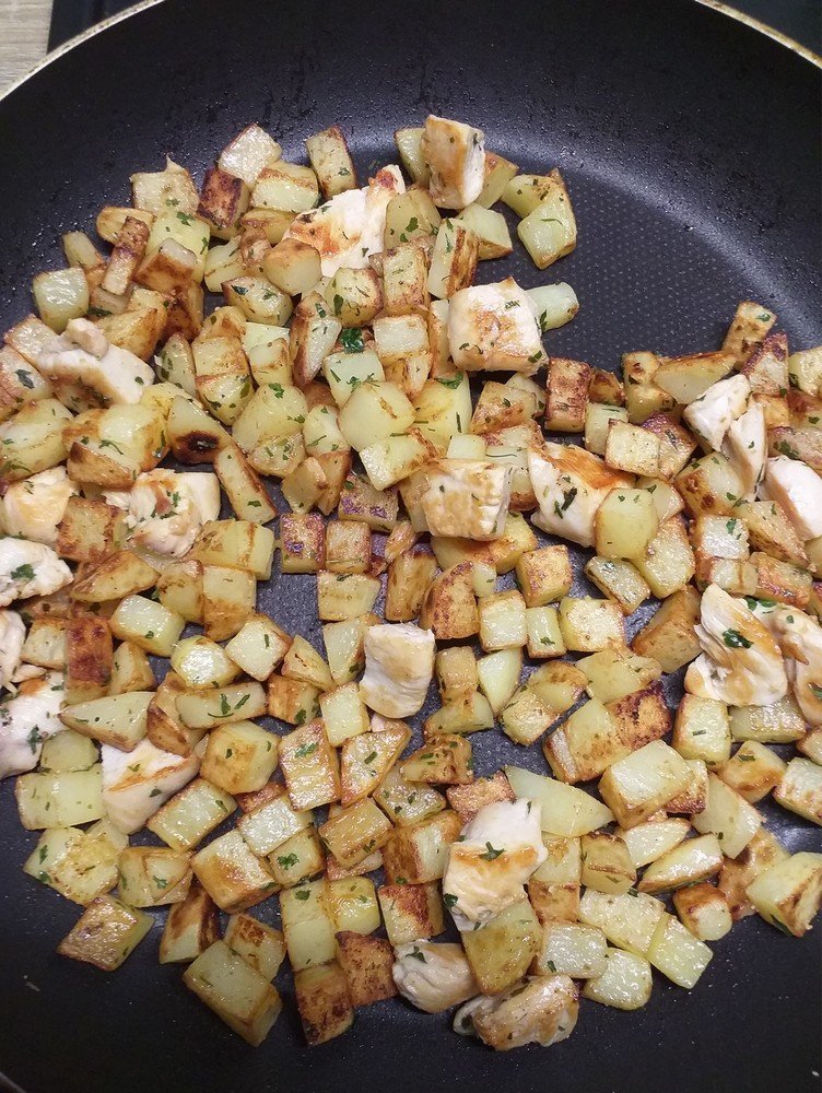 la crème fraiche il faut en mettre juste un peu et la laisser fondre sur les patates, faut pas que ça fasse de sauce sinon ça ramoli trop les patates, alors qu'elles sont bien croustillante autour
