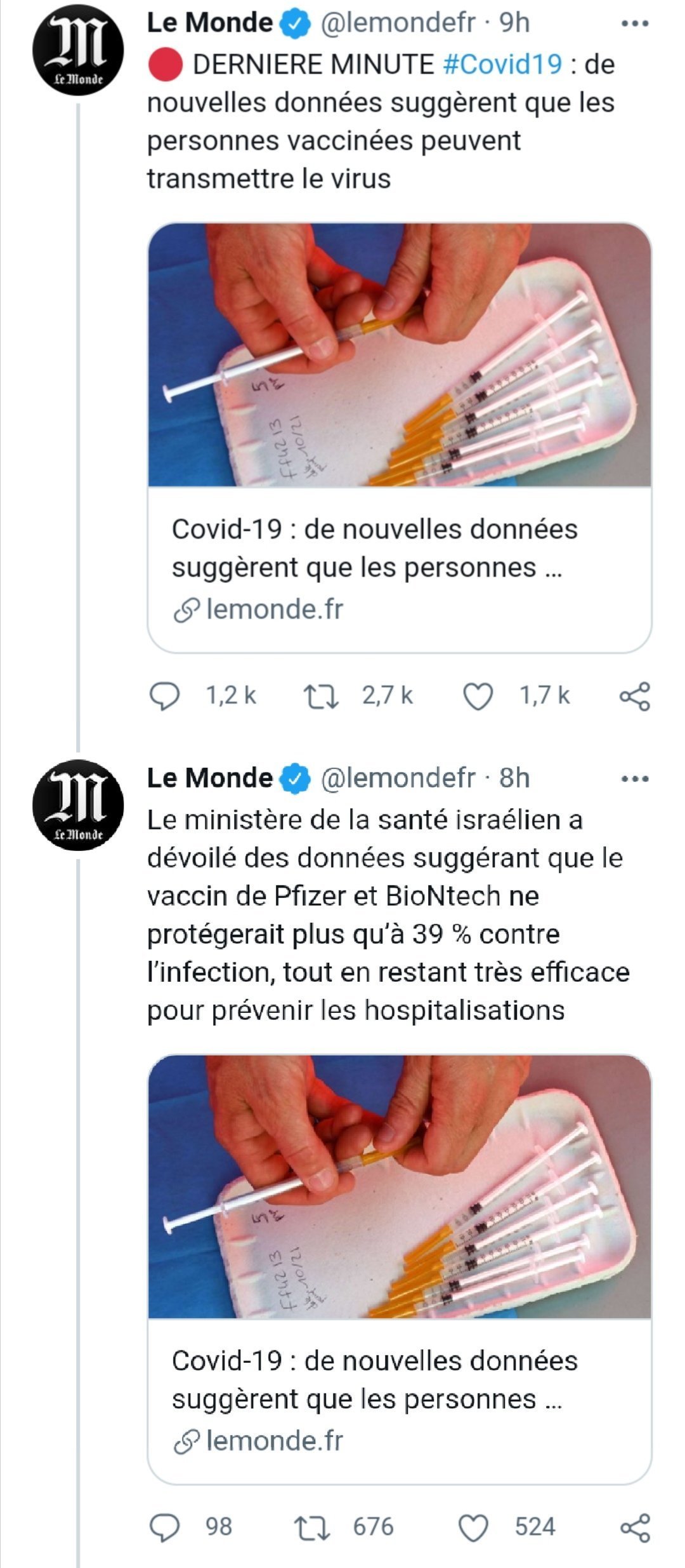 Enfin bon ils parlent de l’ivermectine comme si on avait du l’utiliser, alors que la seule etude la concernant (australienne) concerne des cellules hépatiques de macaques.Vous conviendrez que c’est encore plus imprévisible qu’un vaccin déjà administré depuis 1 an à des millions de gens.