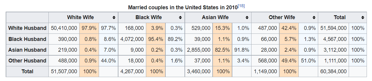 Pourquoi y'a peu de couples homme asiat/femme blanche mais plus de couples femme blanche homm noir ?Parce que les femmes blanches sont très endogames