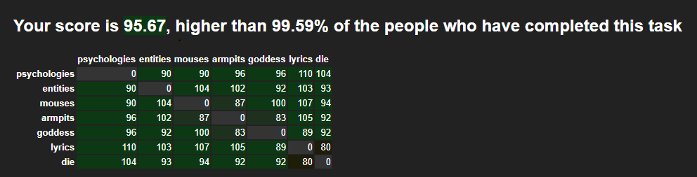 Your score is 81.42, higher than 69.57% of the people who have completed this task