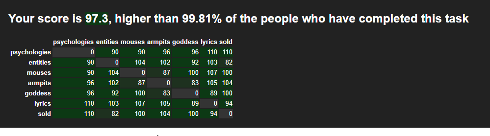 Le 09 août 2021 à 21:05:42 :Your score is 74.28, higher than 28.9% of the people who have completed this task
