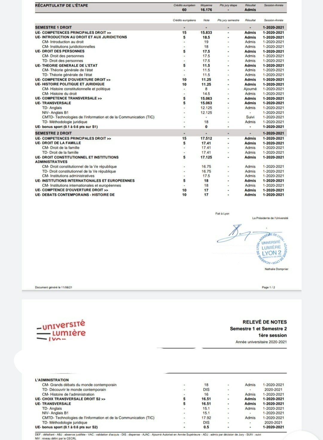 16 de moyenne en L1 droit