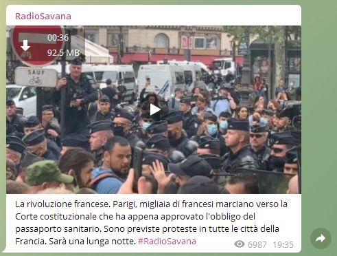 Vu d'Italie : La Révolution française. Paris, des milliers de Français marchent vers le Conseil constitutionnel qui vient de valider le passeport santé obligatoire. Des manifestations sont prévues dans toutes les villes de France. La nuit sera longue.