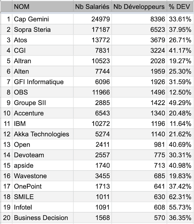 On a le même problème en informatique, 20 premières ESN de France (sur les 230) : 40 000 développeurs