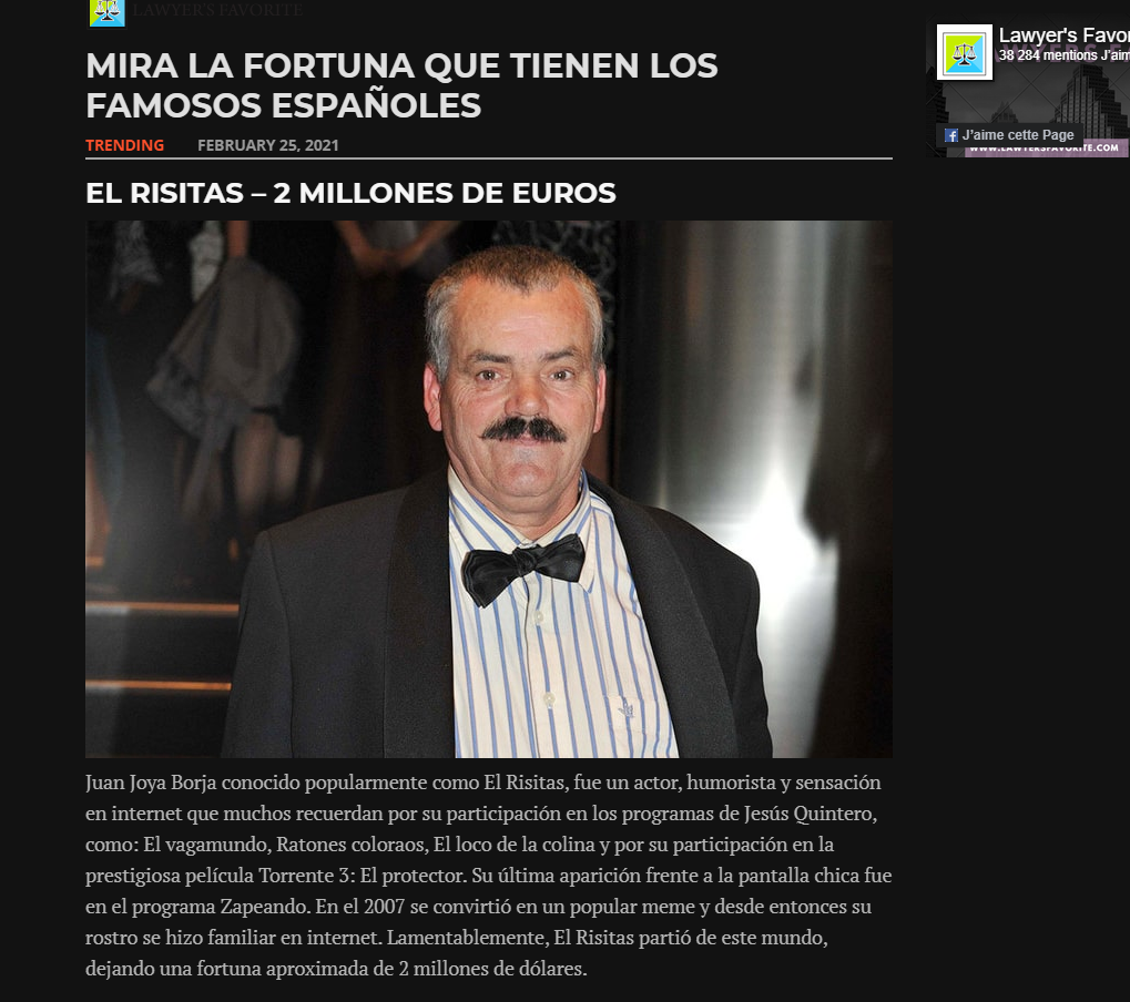 Lamentablemente, El Risitas partió de este mundo, dejando una fortuna aproximada de 2 millones de euros.