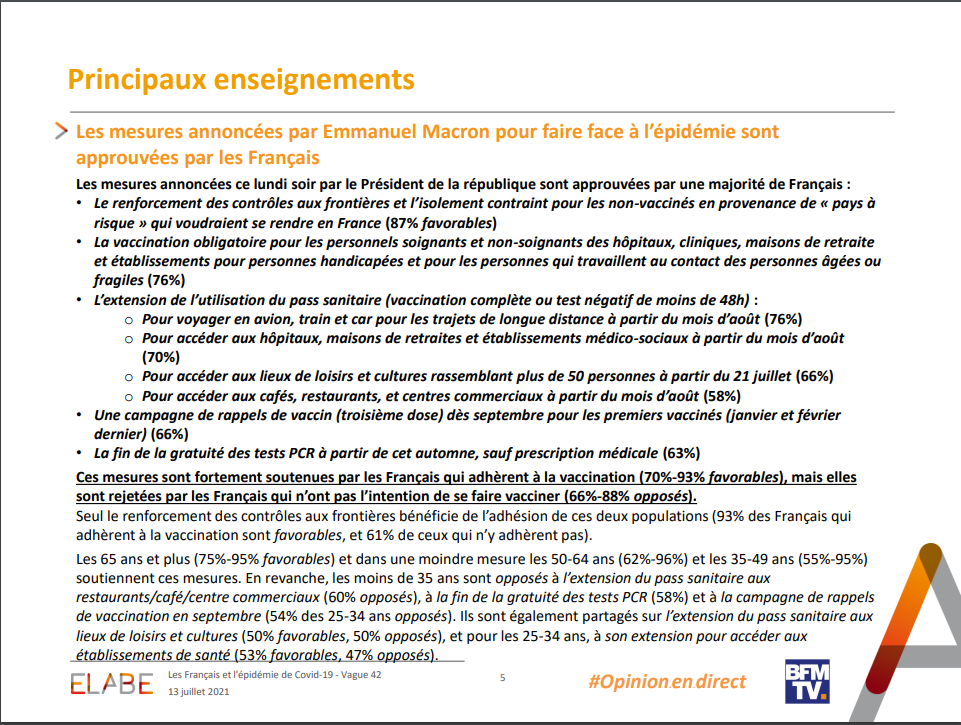 Ces mesures sont fortement soutenues par les Français qui adhèrent à la vaccination (70%-93% favorables), mais elles
