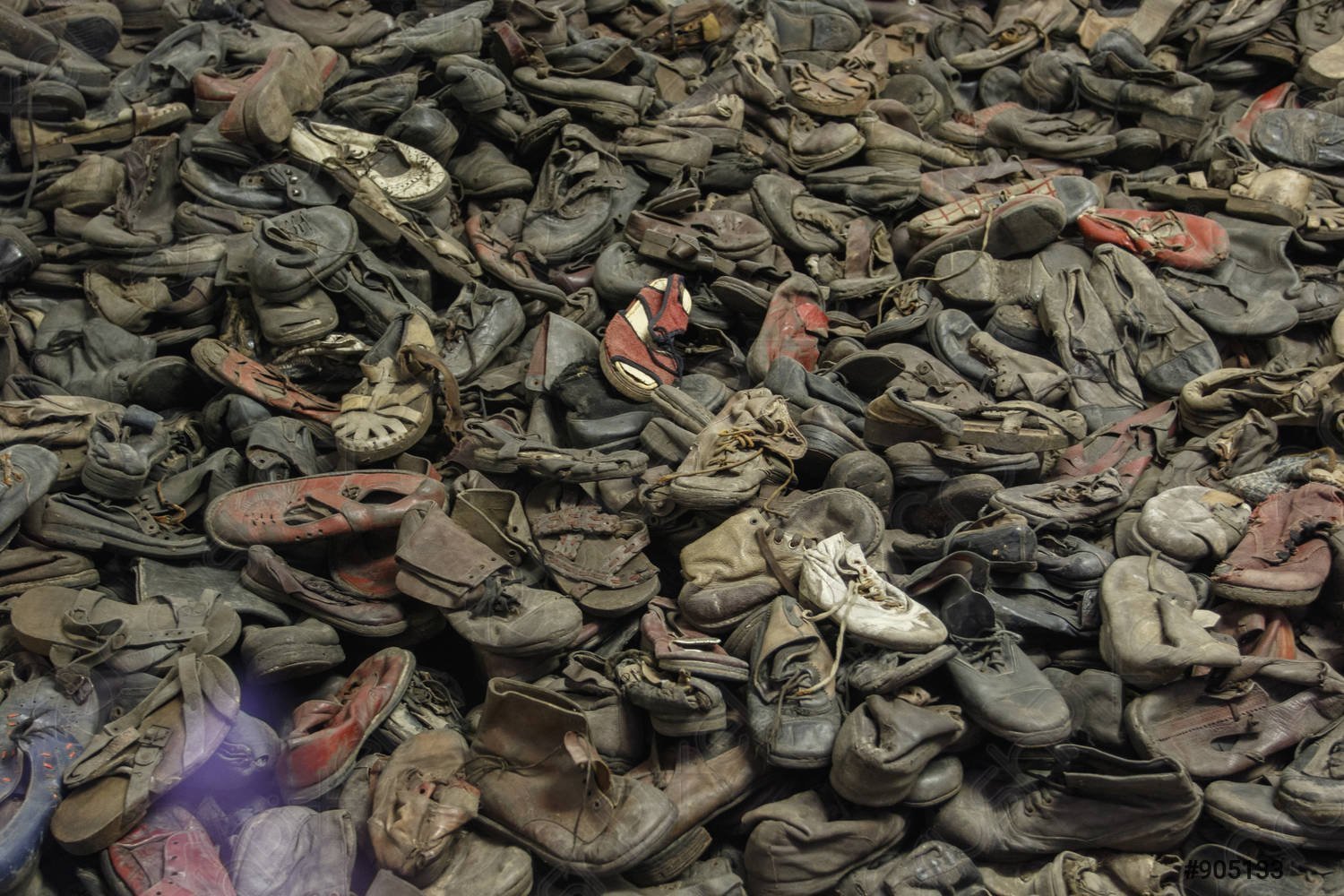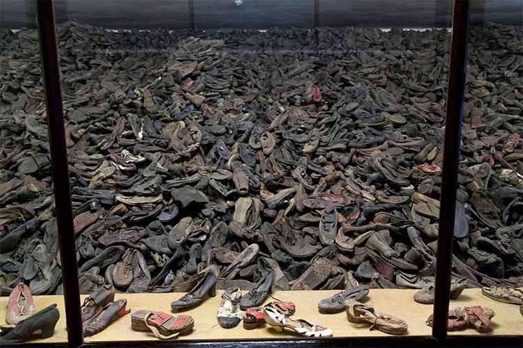 Allons, ça ne te dit rien, des chaussures derrière une vitrine ? dans un genre de musée, en Pologne ...