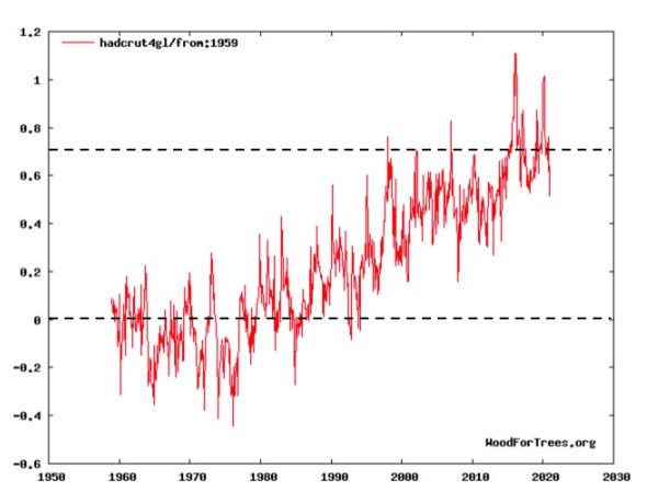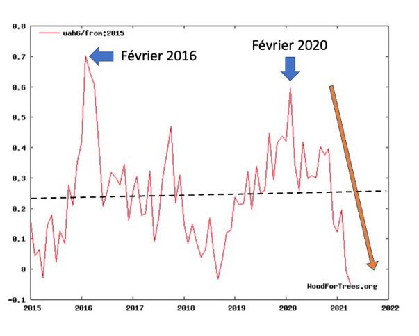Depuis 2015 la température globale s’est stabilisé et commence à baisser malgré des émissions de CO2 toujours croissante dans cette même période de temps.