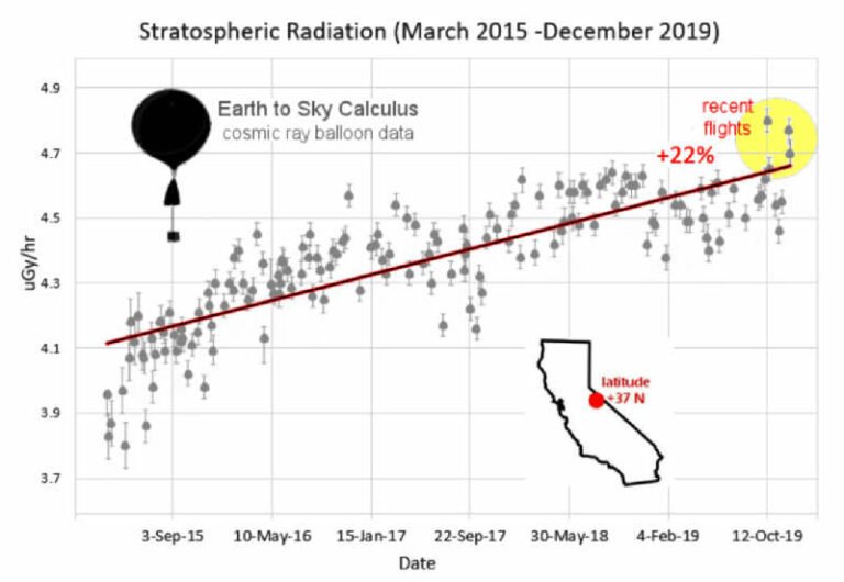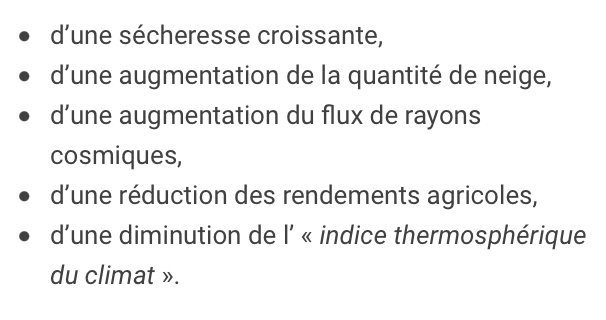 Plus de rayonnement cosmique (amaigrissement de l’atmosphère consécutif à la baisse d’activité solaire) :