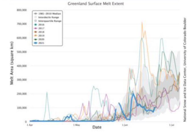 Le Groenland a bien plus de glace que pendant la période 1981-2010 :