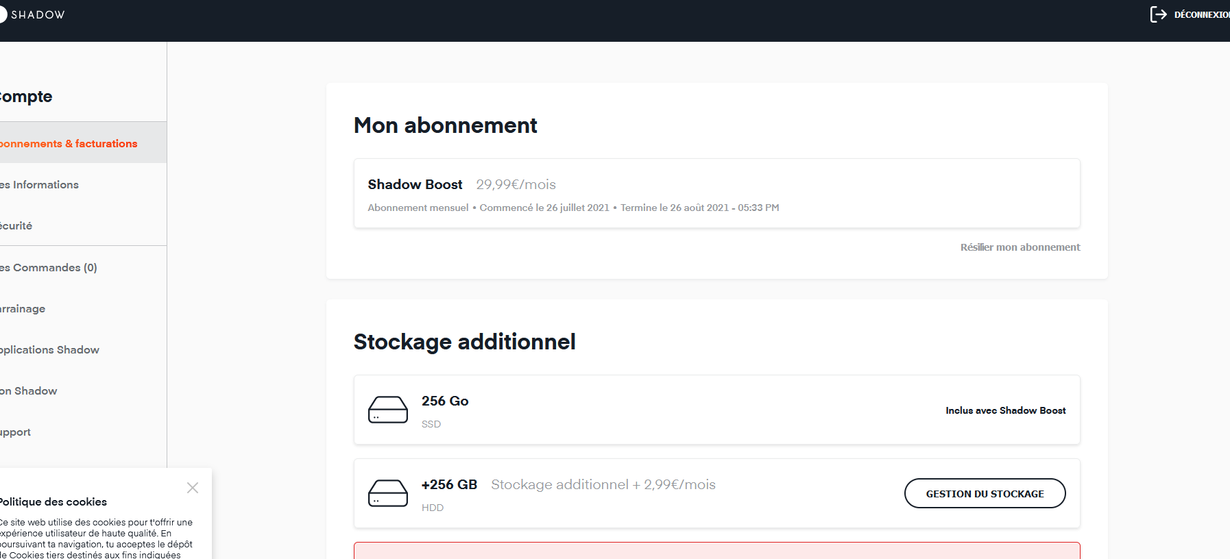 En panne depuis 3 jours https://status.shadow.tech/Je suis dans l'IT je n'ai JAMAIS vu un service tomber aussi longtemps, même les soft du tier monde ont un meilleur SLA