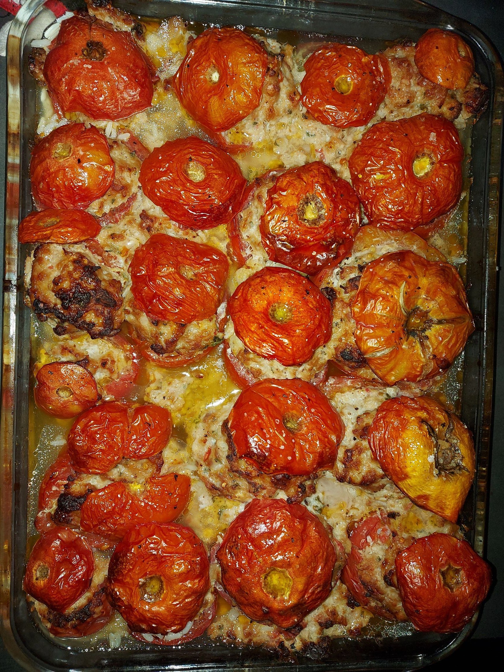 Ensuite remplissez les tomates, faites cuir environ 40mn à 180 sans chapeaux puis ajoutez les chapeaux et laissez cuir encore 15 / 20mn (surveillez c'est vraiment variable en fait)