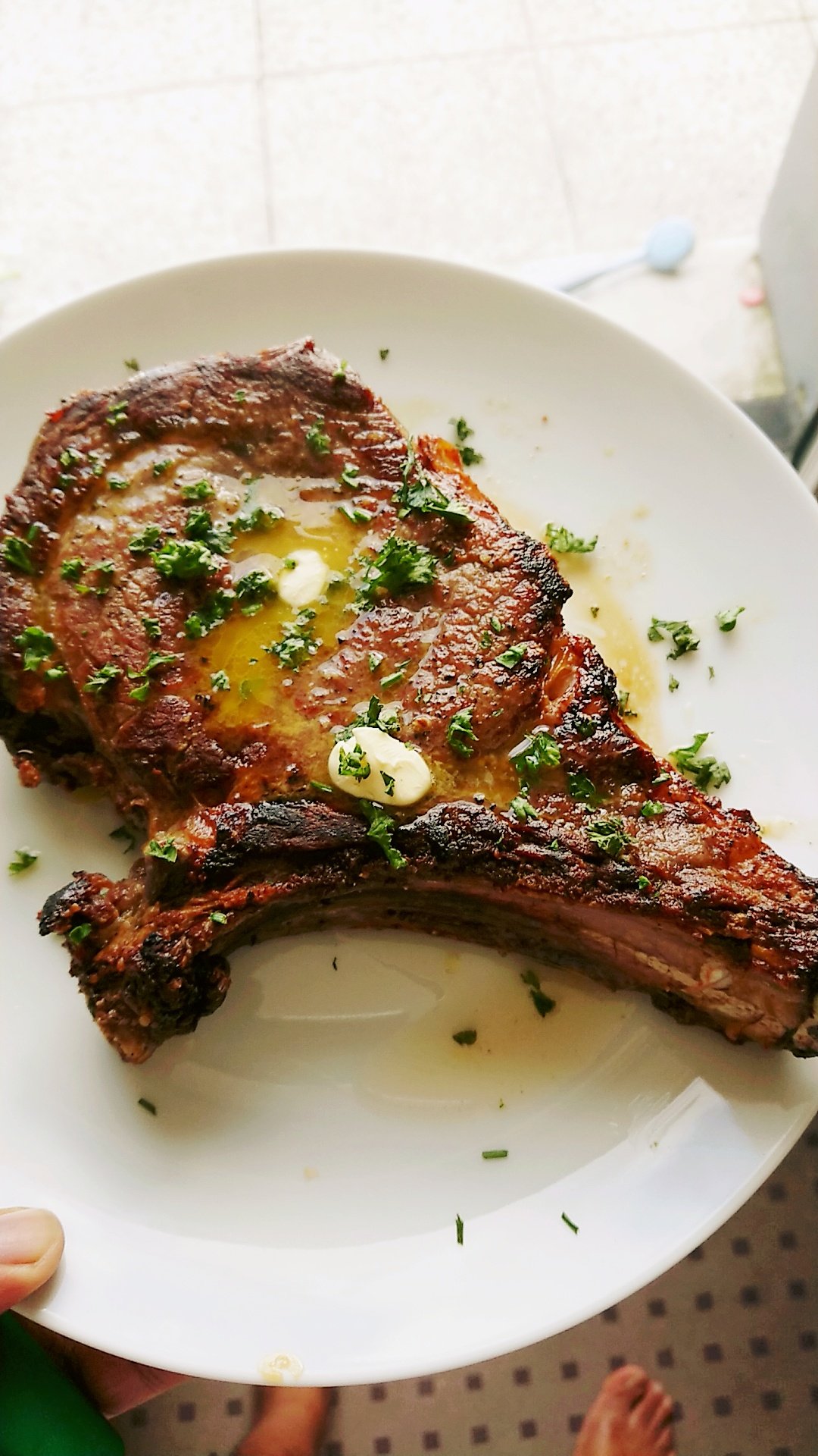 Côté de boeuf à la flamme et son beurre persillé![]()