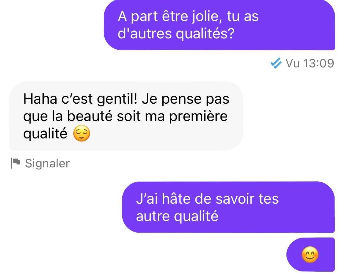 T'aurais pu demand茅 quel sont ces qualit茅s par exemple mdrrrOu et c'est quoi ta premi猫re qualit茅