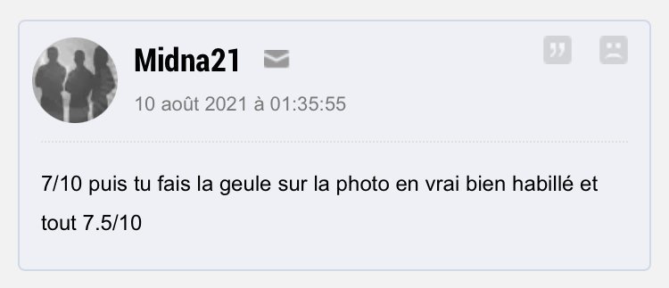 Inscris toi sur tinder, si en 24h tu as 50 likes --> tu es un 7/10, si en 24h tu en as 4 -- tu es un lambda/10