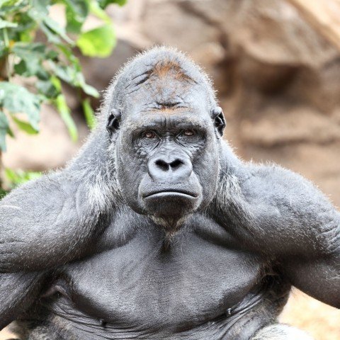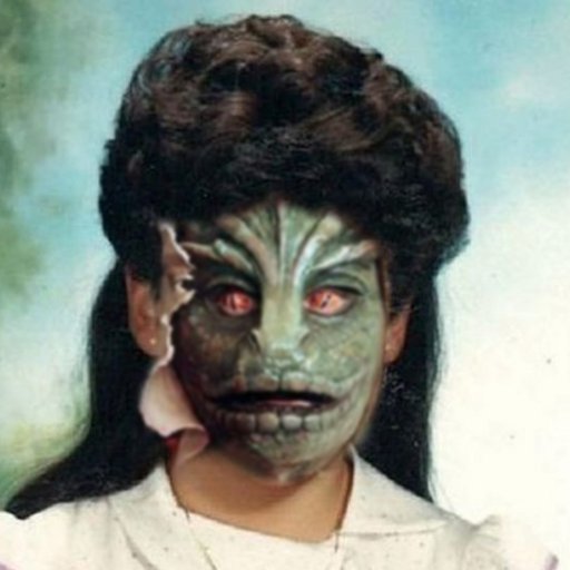 Une photo de singe ensuite une photo d'un humain avec ce qui semble être un masque de reptile et une nouvelle photo de singe