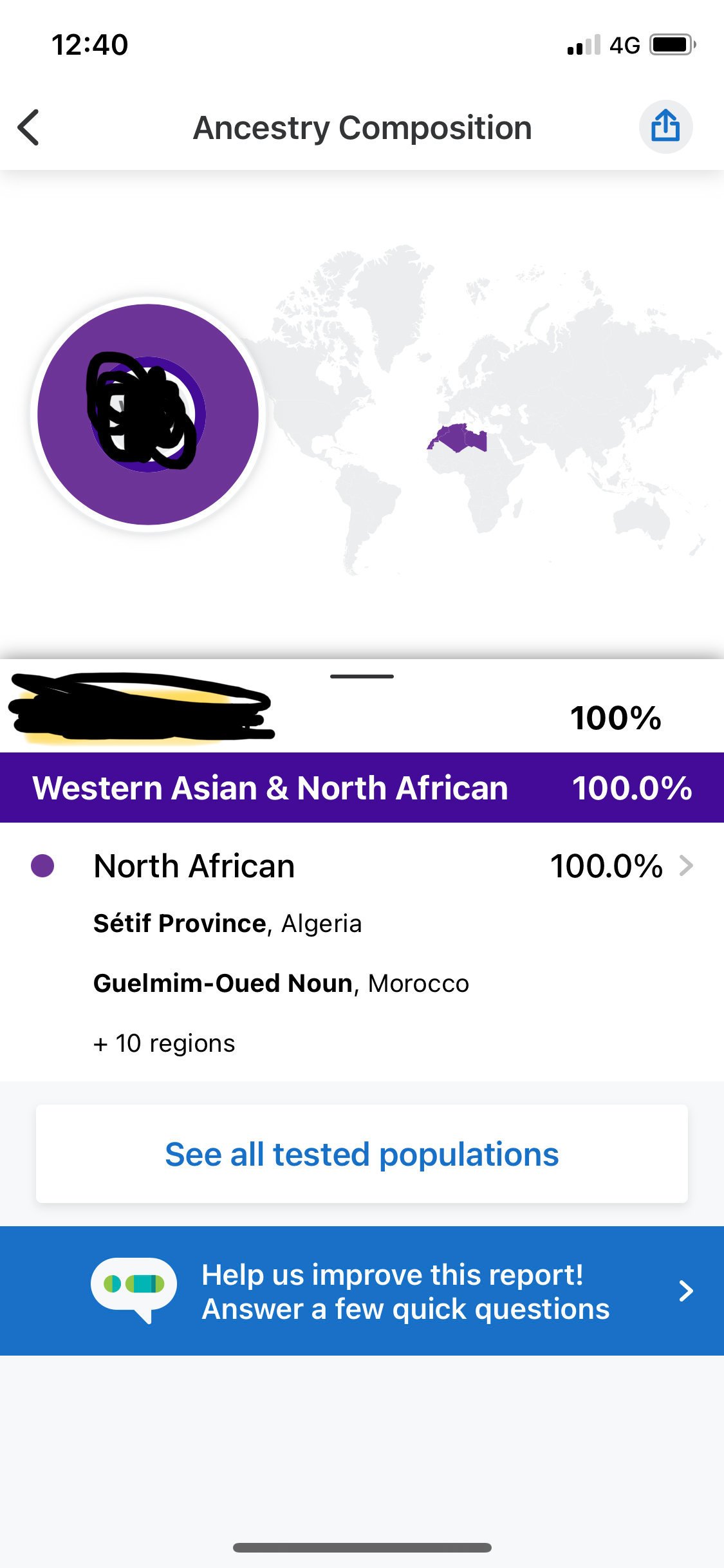 Ces tests sont bidons pour les peuples non-occidentaux, c'est basé sur la base ADN de l'entreprise et comme y a peu de maghrébins qui font ces tests, ça sort toujours la même provenance