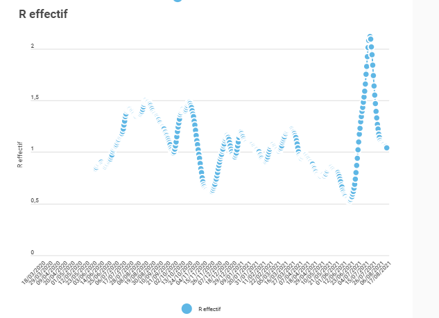 Un mensonge ? Le R0 est plus souvent supérieur à 1 qu'inférieur à 1. C'est donc toi le menteur. Allez hop, PLS. Faut apprendre à lire un graphique monsieur.