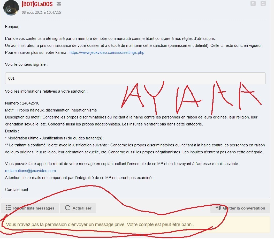 et pour des vieux sujet en prime, des fois je suis pas bannis et je vois un ban def arriver pour un truc que j'ai dis y'a 8 mois