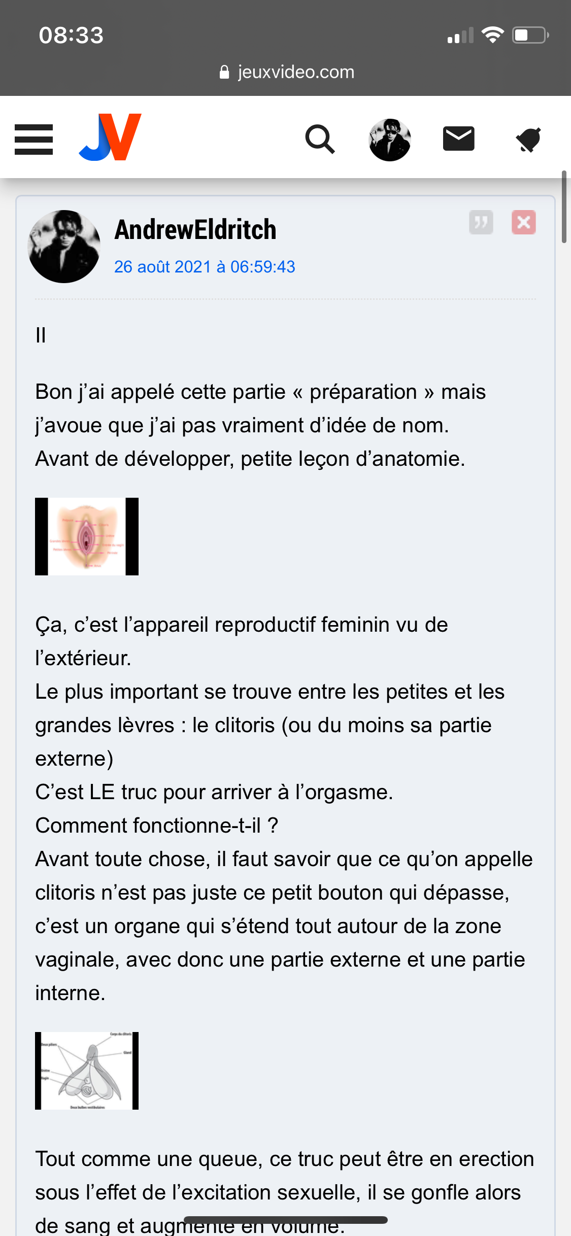 Oui, mais aussi tu dis que le clitoris c’est pas seulement le petit bout qui dépasse pourtant tu te concentres que sur cette partie par exemple.