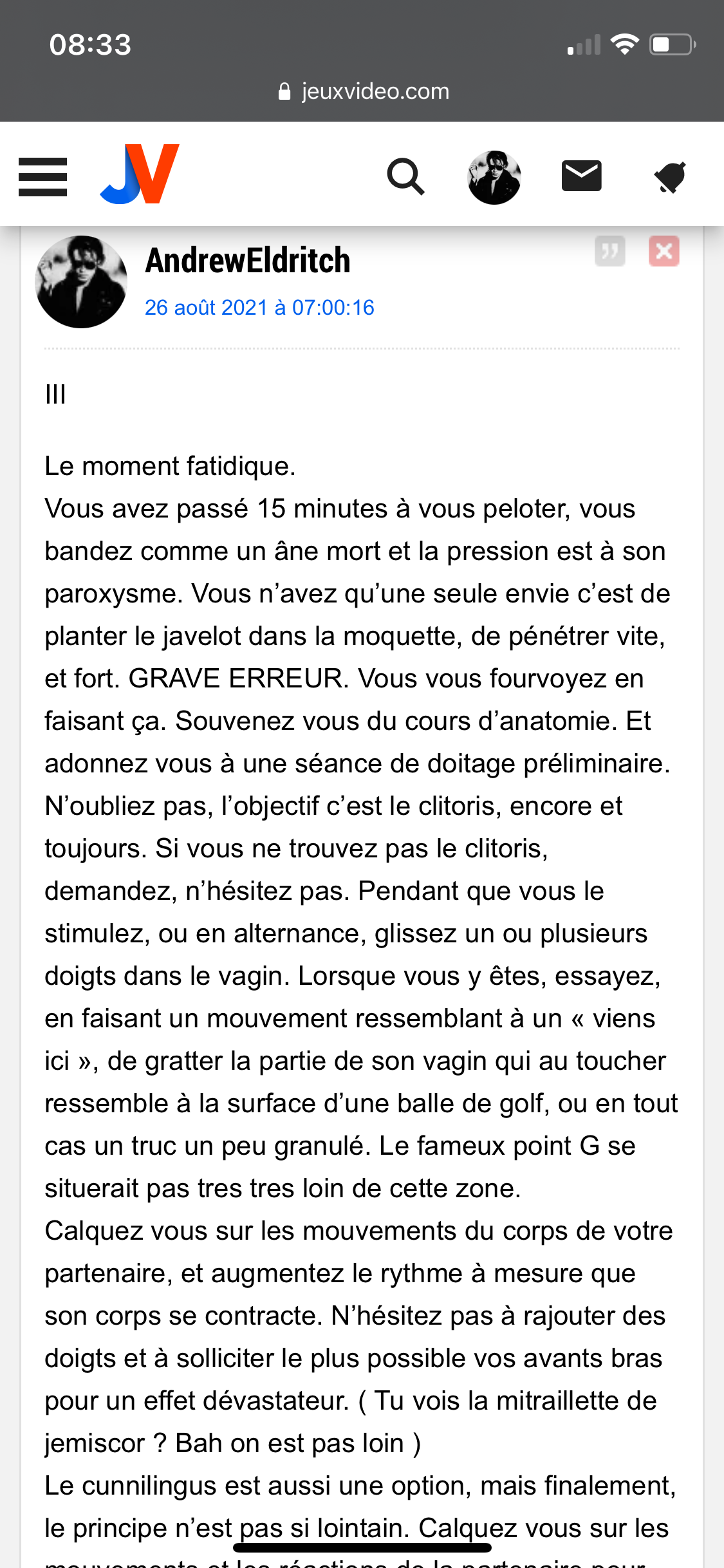 Nonobstant, merci pour tes explications l’OP, ça change des incels d’ici qui te disent "il faut les prendre violemment elles adorent ça, mâle alpha tout ça, il faut les défoncer".