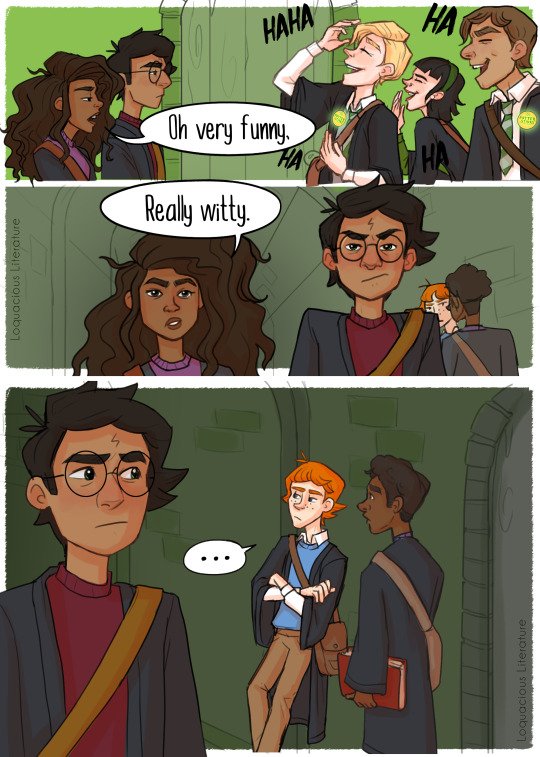 Faut avoir lu le livre, c'est quand Harry embrasse Ginny après un match, le noir et la meuf je me rappelle plus des noms rage, la noire je sais plus qui c'est et Ron ce cuck ne réagit passi , le style de dessin