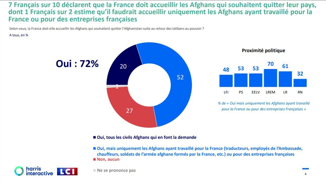 đ«đ· FLASH - 72% des #Français sont favorables Ă l'accueil des rĂ©fugiĂ©s afghans. (Harris Interactive/LCI)