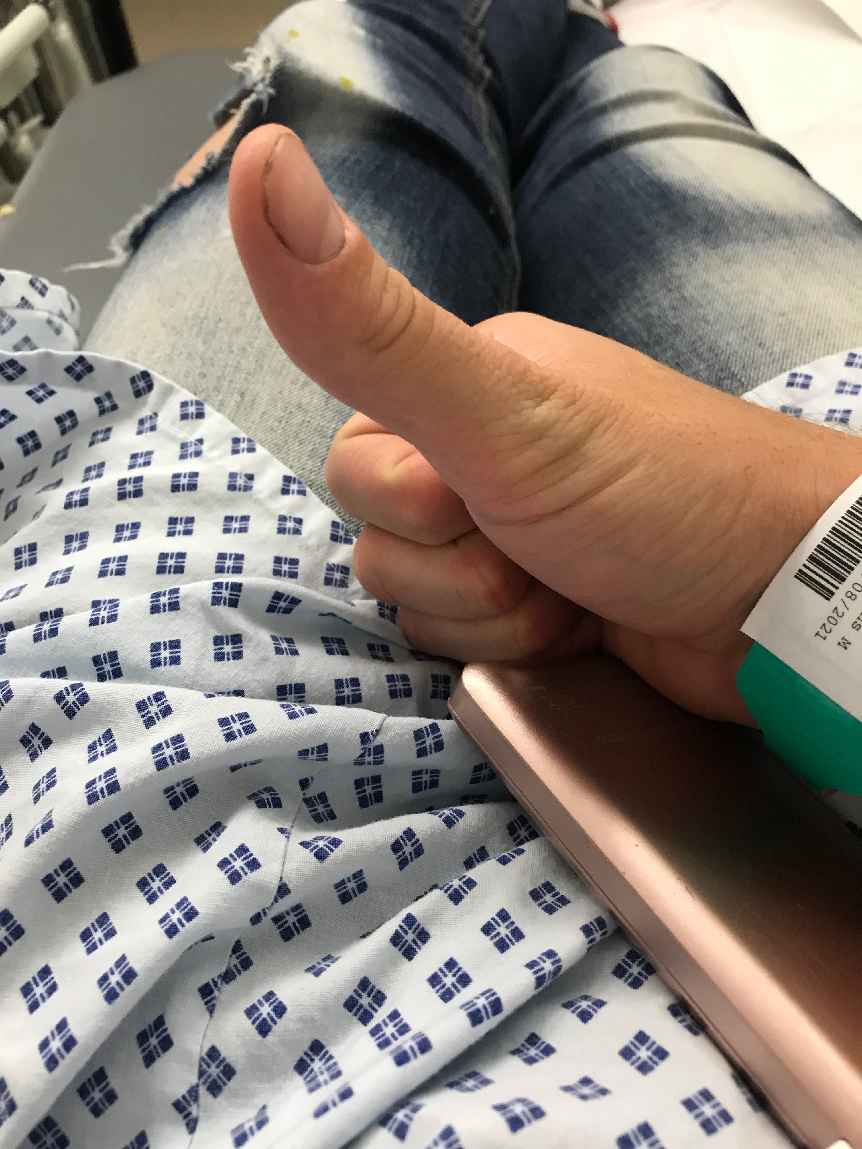 ""Je suis actuellement sur un brancard et perfused donc bon je peux pas trop la ""
