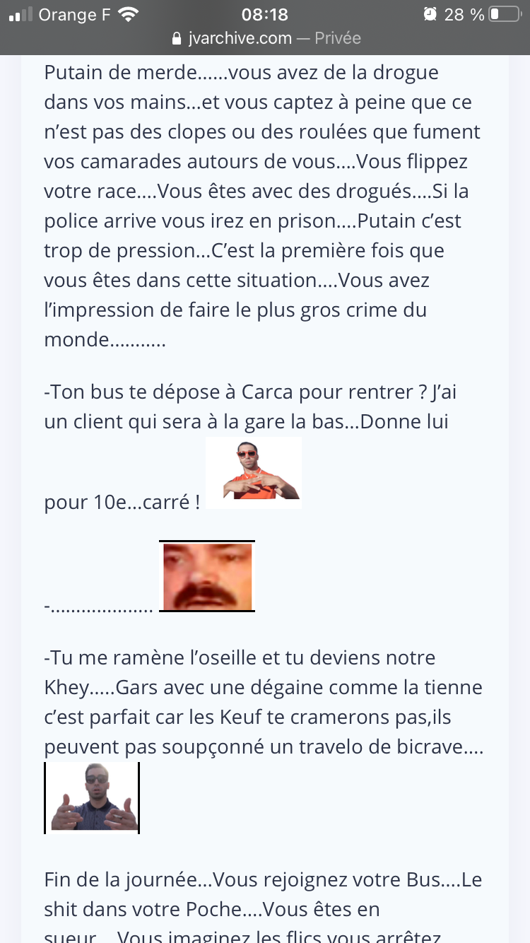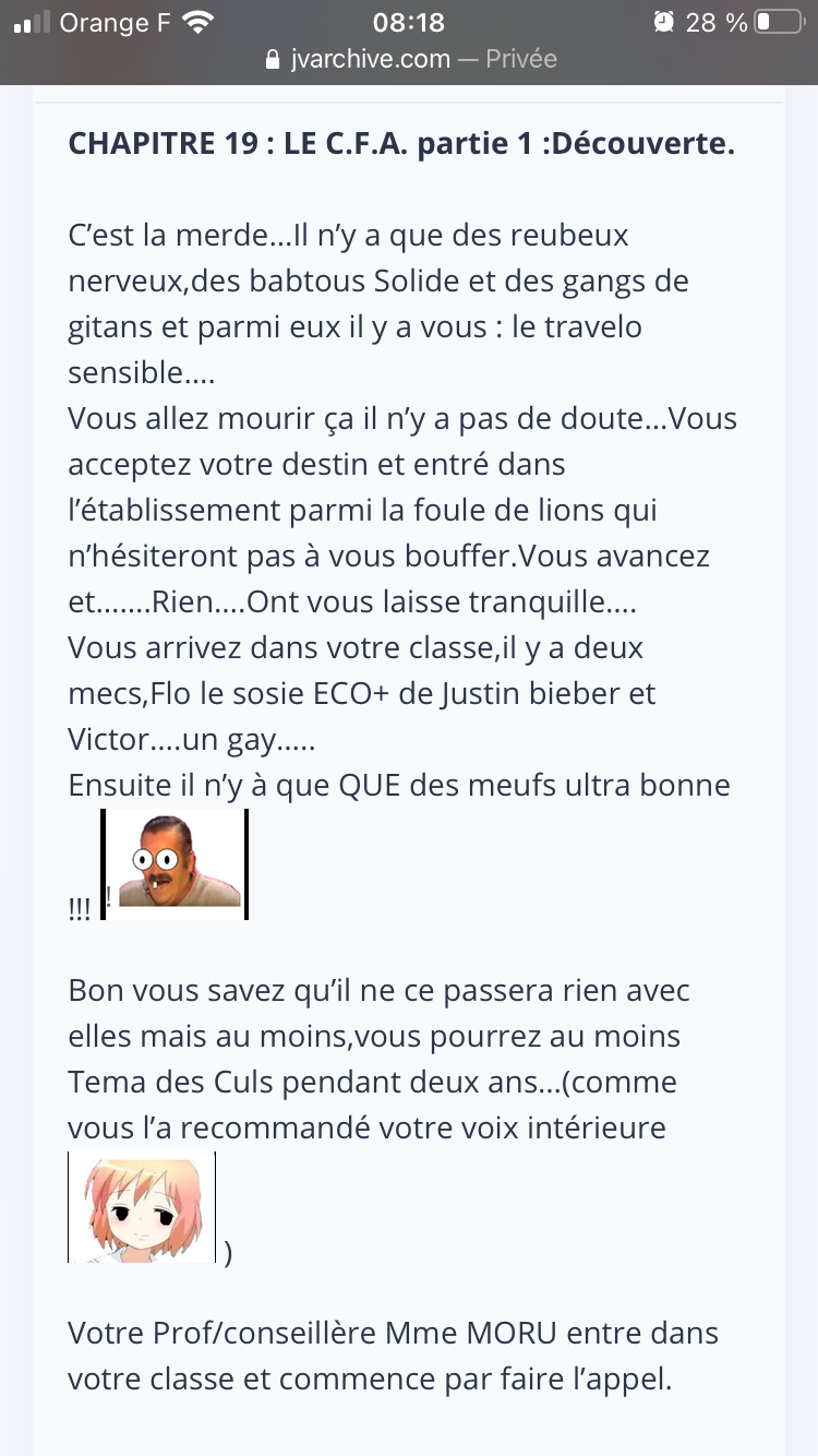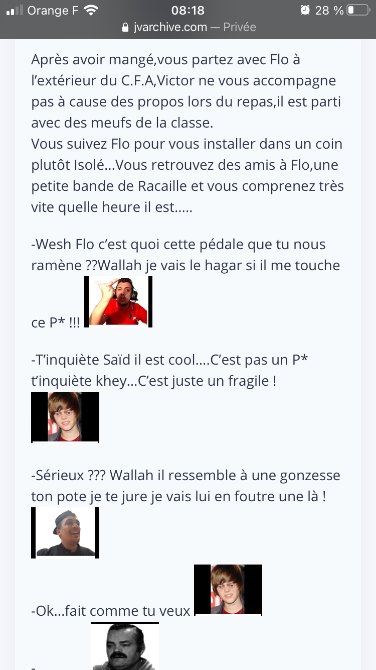 Je comprends pas pourquoi tu dis que c'est une fic, c'est pas sensé être un Risitas sur ta vie?