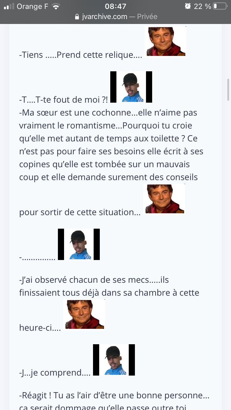 Très étrange parce que le type sur Avenoel faisait comme si il était l'auteur du topic, je sais plus, ça fait combien de temps que j'ai vu le topic sur Avenoel