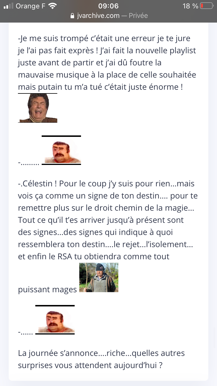 -En faite,derrière le vieux,personne n’a fait fait gaffe mais il y avait Antoine, un amis à mes parents, il était en quad…j’ai sorti une incantation de ma poche (10€) et lui ai tendu…j’avais la flemme de marcher avec vous il faisait chaud, il m’a récupéré à temps avant qu’il y ai quoi que ce soit avec l’autre vieux et m’a déposé ici par la route principale…c’est pour ça que je vous ai dit de fuir par les collines pour être tranquille…