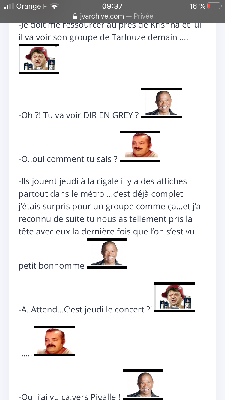 -J’en doute pas ! Mais j’aurais peur de les voir en live eux…ils sont …assez effrayants…c’est spécial…enfin,toi aussi tu es « Spécial » et tu es mon ami donc bon.
