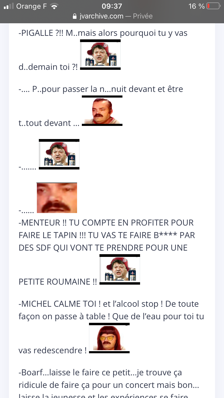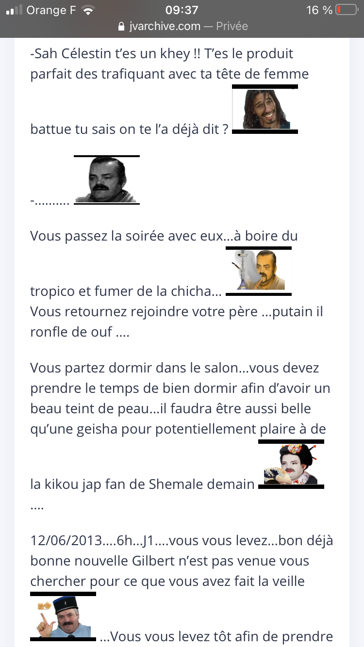 -Oh…mais c’est mon petit Titouin….t’es hanches vont mieux depuis l’été dernier ? T’as eu besoin d’aller à l’hôpital après t’avoir piétiné la b*** a coup de ch**** ?