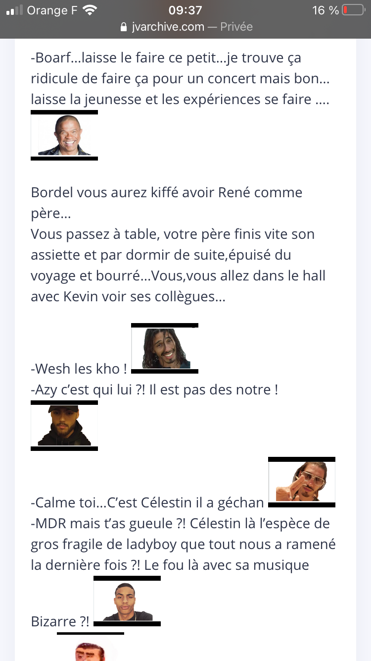 -Bah dit donc célestin…je pensais que tu étais un espèce de puceau chanceux j’ai essayé de te chauffer quand on c’est posé un peu pour voir ce que t’avais sous le pantalon…tu n’avais aucunes réactions mdr j’ai cru que t’étais genre impuissant mais en fait…wow …alors comme ça on se tape des demoiselles tranquillement sans que ta meuf le sache ? Tu deviens vraiment intéressant d’un coup…