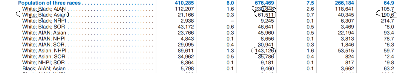 Sa théorie se confirme aujourd'hui, sur l'image indiqué qui est le census américain qui recense les différents métissages on peut voir "white asian and black" qui est bien sur le métissage eurasien + black _.gif)