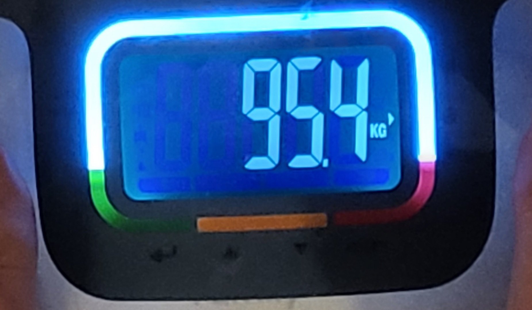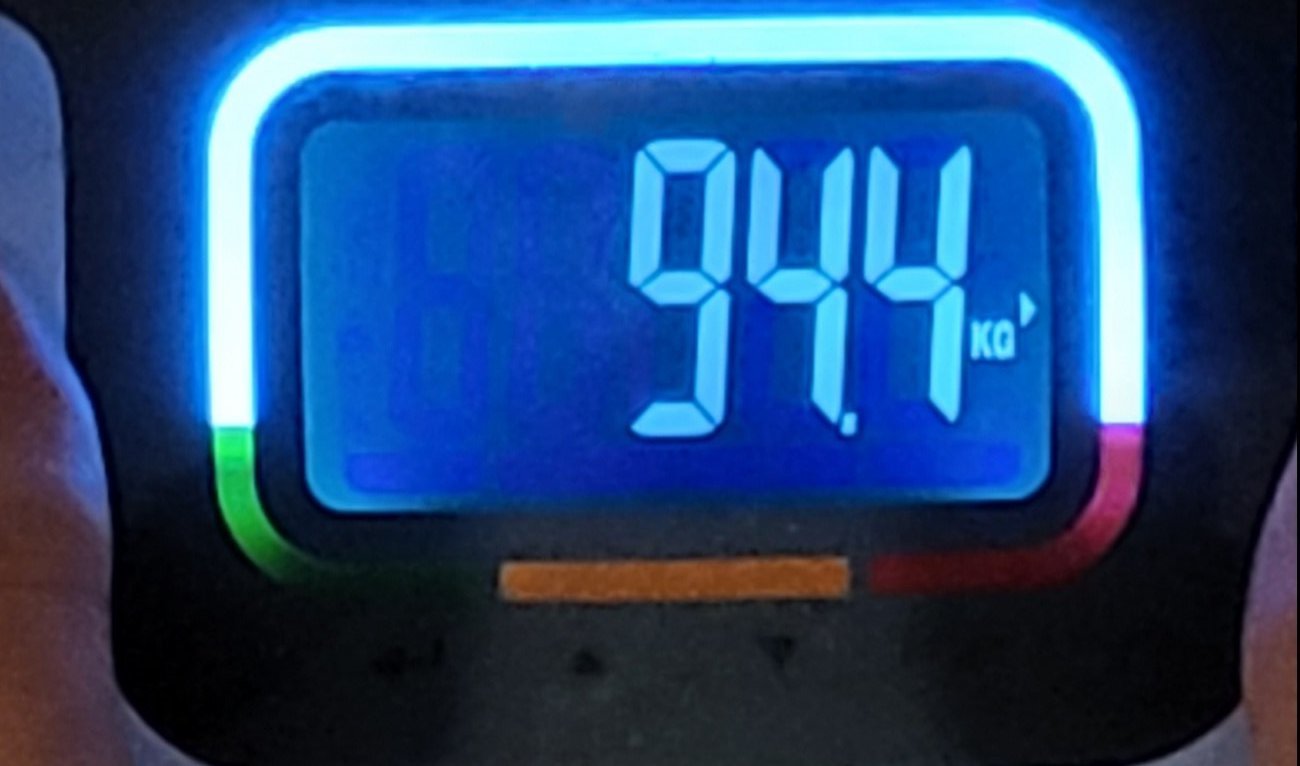 Avant de partir en déplacement pro, je m'étais pesé et j'étais repassé à 95.4 kg...et là 94.4 kg en ayant seulement une séance / 2 + en faisant très attention à la nourriture
