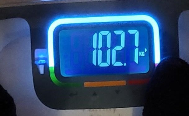 la dernière fois que je m'étais pesé il y a 4 semaines j'étais à 102kg.