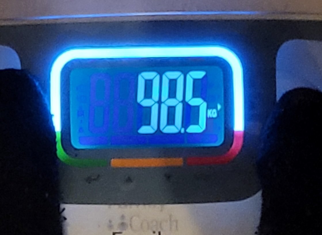 J'avais mis en objectif "Moins de 98kg avant le 31 décembre" mais ça va être compliqué sachant que Noël est dans 3 jours, j'ai 2 anniversaires + nouvel an
